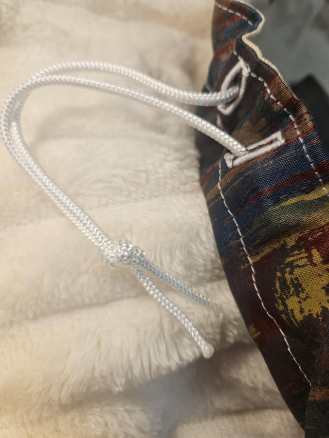 La bourse à maquillage s'ouvre complètement en grand pour avoir accès a son contenant et se referme en tirant sur les liens.