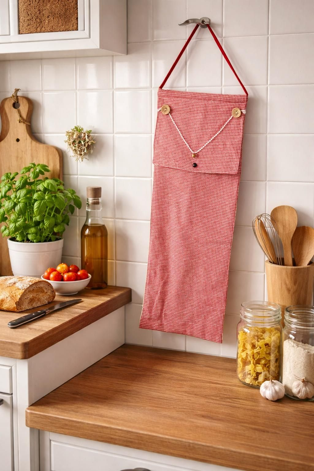 S and co couture vous propose un sac à pain, vichy rouge, intérieur coton.