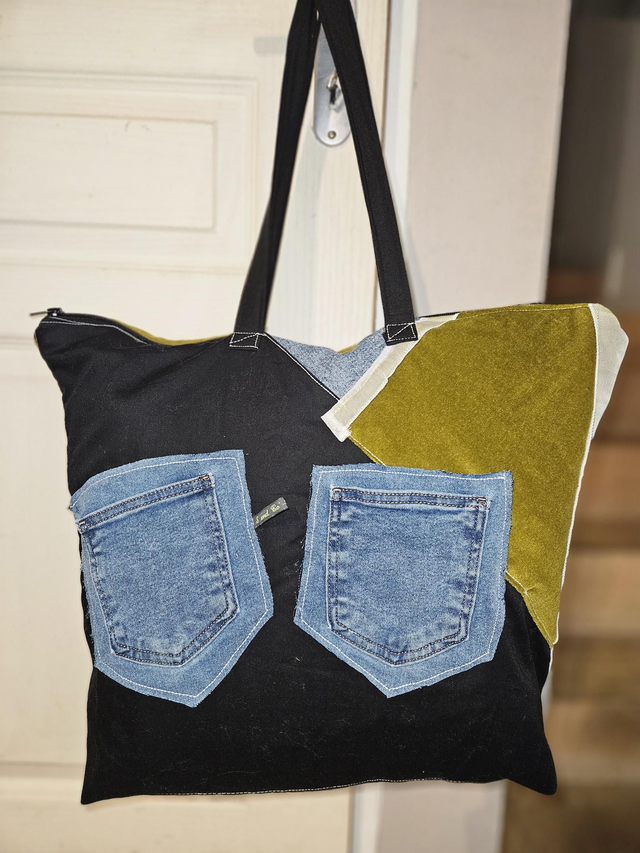 Sac Week-end unique, équipé de 2 poches extérieure en jeans, intérieur en Doublure coton.