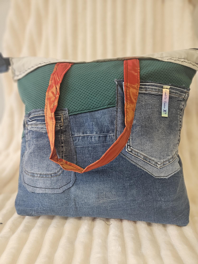Sac Week-end unique, équipé de 2 poches extérieure en jeans, intérieur en Doublure coton.